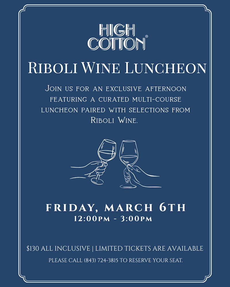 March 6 2026 | 12:00 PM - 3:00 PMJoin us for an exclusive afternoon featuring a curated multi-course luncheon paired with selections from Riboli Wine.